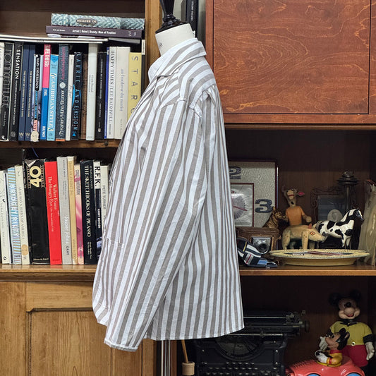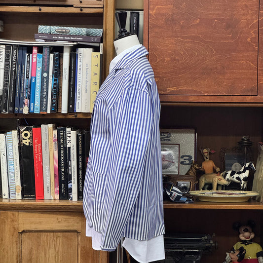 このシャツには、1796年創業のイタリア・アルビニ社のファブリックブランド「THOMAS MASON(トーマス・メイソン)」のJourney生地を使用しております。しわに強く、お手入れが簡単で、一日中きちんとした外観を保つ綿100%の生地です。通常、メンズドレスシャツで使用される上質素材を、デイリーに着用できる一枚に仕立てました。